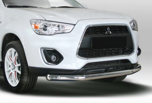 Защита переднего бампера труба предназначена для автомобилей Mitsubishi ASX от 2013 г.в. Вам не придется подгонять защиту под размеры бампера вашего авто. И с монтажом проблем не возникнет: установка защиты переднего бампера производится в штатные отверстия, а значит, необходимость сверлить кузов отпадает.