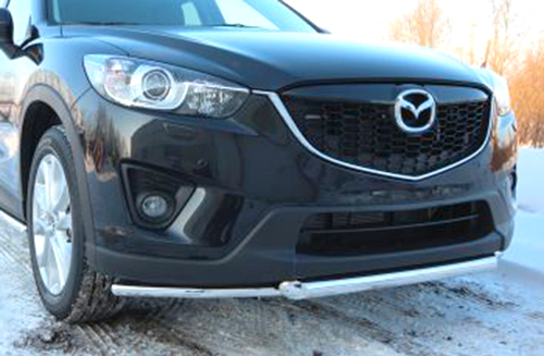 Защита переднего бампера для Mazda CX-5 – это двойная труба на бампер из нержавеющей стали диаметром 42/60 мм.