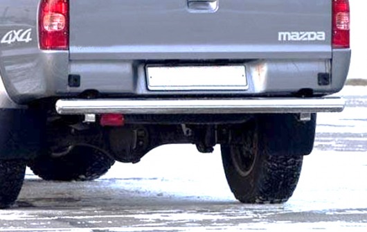 Труба на задний бампер Mazda B-Series и Ford Ranger защищает задний бампер автомобиля от различных механических повреждений при столкновениях на дороге и неудачных парковках. А кроме этого, защита заднего бампера для Мазда Б-Серии и Форд Рейнджер — это дополнительная деталь тюнинга.