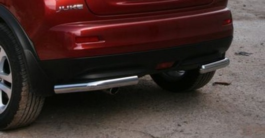 Уголки на задний бампер Nissan Juke защищают задний бампер автомобиля от различных механических повреждений при столкновениях на дороге и неудачных парковках. А кроме этого, защита заднего бампера для Ниссан Жук — это дополнительная деталь тюнинга.