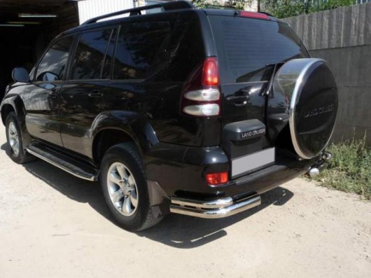 Защита заднего бампера для Toyota LC 120 Prado – это защитные уголки на бампер из нержавеющей стали диаметром 76 мм.