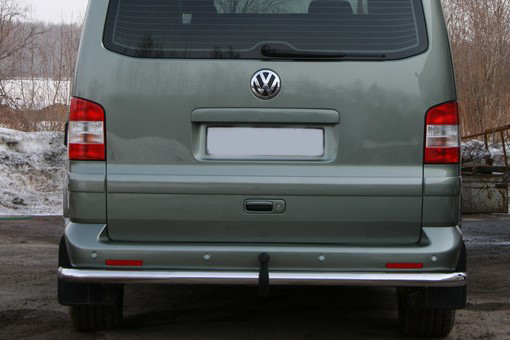 Защита заднего бампера труба предназначена для автомобилей Volkswagen Multivan California (4х4) 2005-2009 г.в. Вам не придется подгонять защиту под размеры бампера вашего авто. И с монтажом проблем не возникнет: установка защиты заднего бампера производится в штатные отверстия, а значит, необходимость сверлить кузов отпадает.