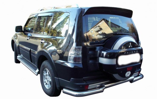 Защита заднего бампера для Mitsubishi Pajero IV – это труба с проступью (ступень) на бампер из нержавеющей стали диаметром 76 мм.