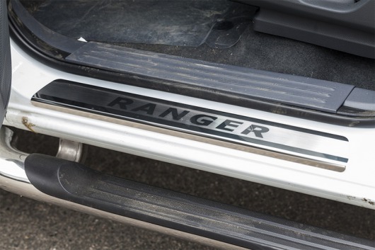 Внутренняя накладка на порог Ford Ranger — это аксессуар автомобильного тюнинга, который защищает внутренний порог от механических повреждений при посадке и высадке из машины. Декоративные накладки с рисунком на внутренние пороги предназначены для автомобилей Ford Ranger от 2013 г.в. с 4-мя дверями.