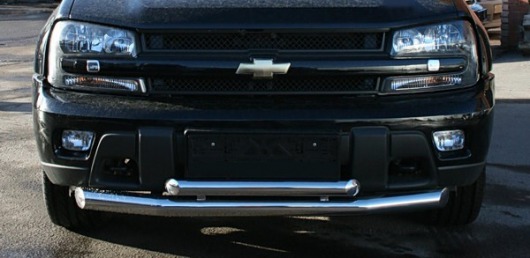 Защита переднего бампера для Chevrolet Trail Blazer – это двойная труба на бампер из нержавеющей стали диаметром 76/60 мм.