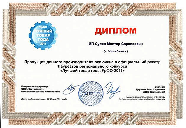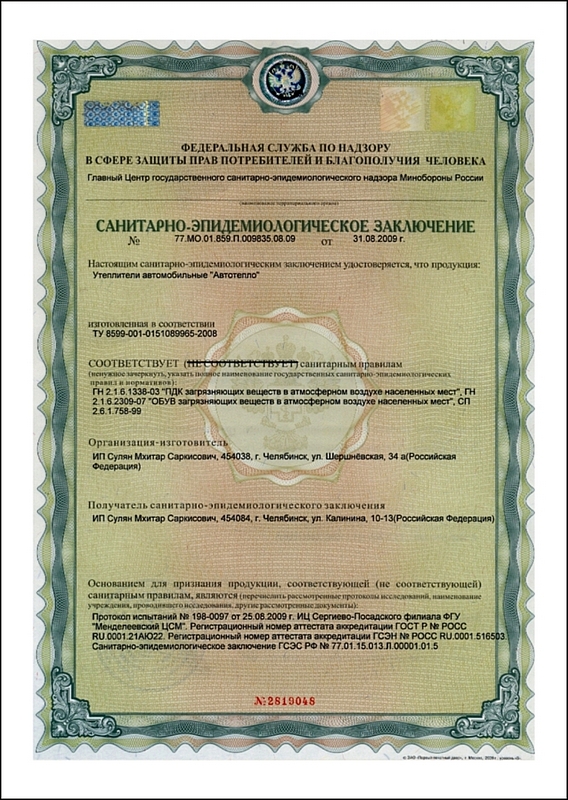 Автоодеяло "Автотепло" имеет все необходимые сертификаты качества, а также получило звание "Лучший товар года УрФО 2011"