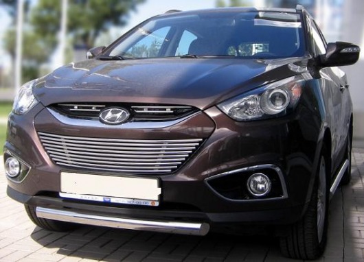 Вопросы и отзывы про Накладка на решетку радиатора Hyundai ix35 от 10 г.в. (верхняя, хром, 1 деталь из 3 трубок по 10 мм)