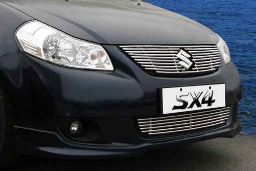 Декоративная накладка на решетку радиатора Suzuki SX4 седан — это яркая хромированная деталь тюнинга плюс эффективная защита радиатора вашего авто. Как декоративный аксессуар, накладка на радиатор станет оригинальным дополнением к внешнему виду автомобиля. С другой стороны, она защитит решетку радиатора от негативного воздействия пыли, грязи и влаги, а также от механических повреждений.