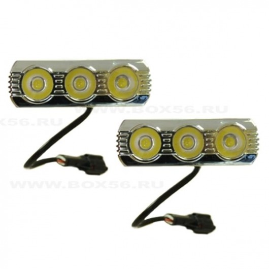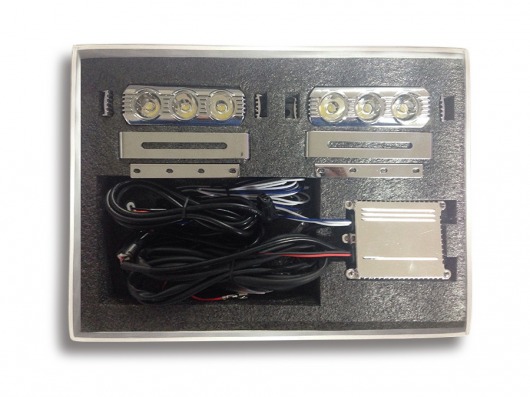 В комплект огней дневного света SKD-013 входят 2 секции по 3 светодиода с линзами и мощностью 3 Вт. Благодаря универсальному креплению их можно установить на любой автомобиль.