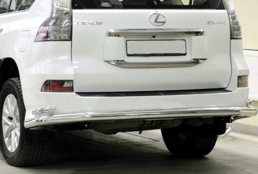 Двойная защита заднего бампера предназначена для автомобилей Lexus GX460 от 2013 г.в. Вам не придется подгонять защиту под размеры бампера вашего авто. И с монтажом проблем не возникнет: установка защиты заднего бампера производится в штатные отверстия, а значит, необходимость сверлить кузов отпадает.