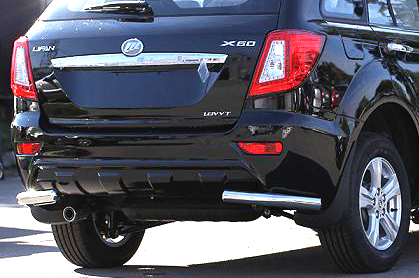 Защита заднего бампера для Lifan X60 – это защитные уголки на бампер из нержавеющей стали диаметром 60 мм.