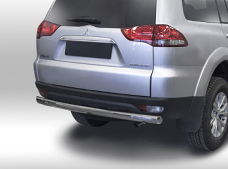 Защита заднего бампера труба предназначена для автомобилей Mitsubishi Pajero Sport от 2013 г.в. Вам не придется подгонять защиту под размеры бампера вашего авто. И с монтажом проблем не возникнет: установка защиты заднего бампера производится в штатные отверстия, а значит, необходимость сверлить кузов отпадает.