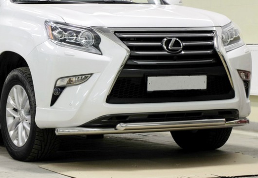 Защита переднего бампера для Lexus GX460 – это двойная труба на бампер из нержавеющей стали диаметром 60/60 мм.