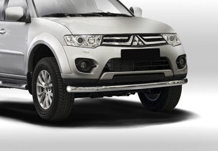 Защита переднего бампера для Mitsubishi Pajero Sport – это труба на бампер из нержавеющей стали диаметром 76 мм.