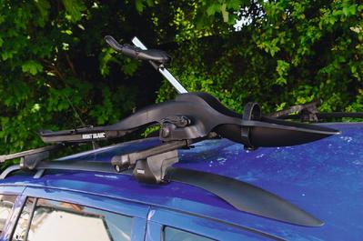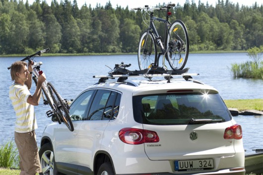 • Багажник для велосипеда устанавливается на крышу автомобиля (с левой стороны) на поперечники, причем, как на стандартные прямоугольные, так и на аэродинамические