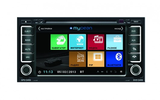Штатная голова сделана на базе двухъядерного процессора частотой 1 Ггц семейства ARM Cortex с очень высокой производительностью. На ШГУ MyDean 3042 устанавливается операционная система WinCE 6.0 с полностью русифицированным меню. Сенсорный дисплей диагональю 7", с разрешением 800х480 и высокой контрастностью позволяет отлично просматривать фото и видео всех основных форматов, включая видео высокой чёткости HD. Также Вы можете просматривать эфирное телевидение, для этого в штатную голову встроен аналоговый ТВ-тюнер.