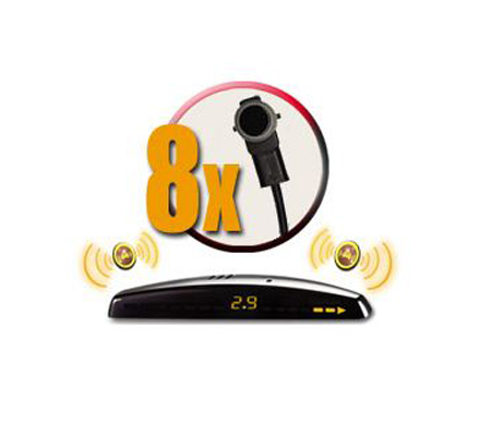В комплект поставки входит 4 датчика слепых зон BSA06 и 4 передних датчика парковки PAS06 черного цвета. Датчики устанавливаются с внутренней стороны бампера и практически незаметны снаружи. Более того, вы можете покрасить их под цвет бампера.