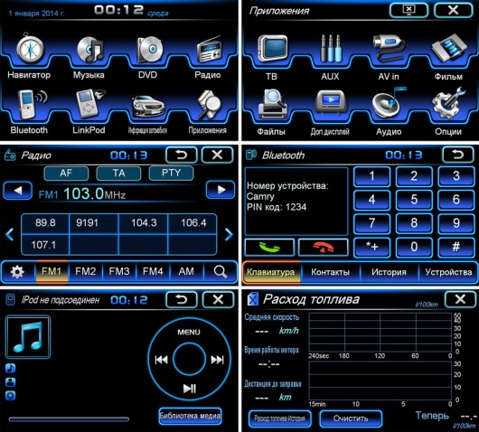 Прибор читает множество видео-, аудиоформатов и даже текстовые файлы: DVD/VCD/CD/MP3/MPEG4/CD-R/WMA, MP3, WMA, WAVE, MPEG1/2, MPEG4, WMV, JPEG, GIF, PNG, BMP, Adobe PDF. Для радио- и телелюбителей есть FM и аналоговый тюнеры. Кстати, музыку можно прослушивать, не прекращая при этом работу навигации.
