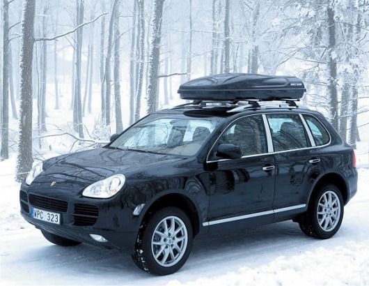 Обратите внимание! Сначала необходимо закрепить на крыше поперечины багажника, а потом уже на них ставится бокс. Если у вас нет поперечников, вы можете подобрать их для своей марки авто здесь.