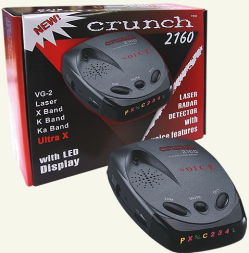 Если антирадар Crunch 2160 обнаруживает какой-либо сигнал из заданных диапазонов, то он оповещает об этом при помощи голосового сообщения и звукового сигнала, которые сопровождаются свечением определенного светодиодного индикатора. В целом, по результатам независимых тестов, этот антирадар показал весьма уверенное обнаружение сигналов в диапазоне частот X, K и Ka.