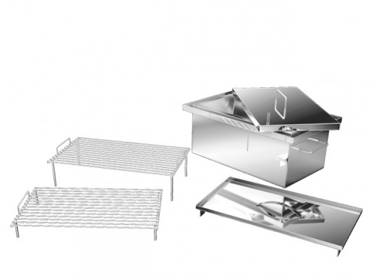 Все элементы коптильни изготовлены из высококачественной пищевой нержавеющей стали (толщина стенок — 2 мм). Такая коптильня из нержавейки не боится коррозии и прослужит вам более 15 лет — и это при том, что вы будете часто ее использовать. Кроме того, такую коптильню легко чистить и мыть после использования.