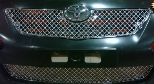 Комплект пластиковых решеток радиатора подходит автомобилям Toyota Corolla 150 2007-2010 г.в. Изготовлены в виде сплошной сетки, без эмблемы автомобиля.