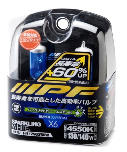 Газонаполненная лампа для авто IPF 6X45 SPARKLING WHITE обладает цветовой температурой 4550К. Другими словами, вы получаете чистый белый свет (аналог ксенона), который эффективен при любых дорожных условиях (в том числе в дождь и туман). При этом  яркий свет абсолютно не ослепляет водителей встречных автомобилей.