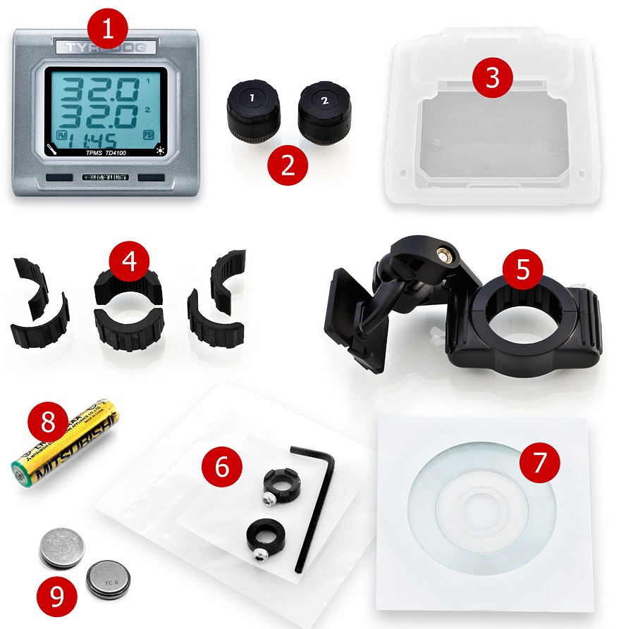 Беспроводные датчики накручиваются на колесные вентили. После установки элементов питания, датчик начинает измерять  давление и температуру. Полученные данные передаются на LCD-дисплей и сразу же отображаются на экране. Если показатели выходят за пределы, которые вы устанавливаете, система предупреждает при помощи мигания подсветкой дисплея.