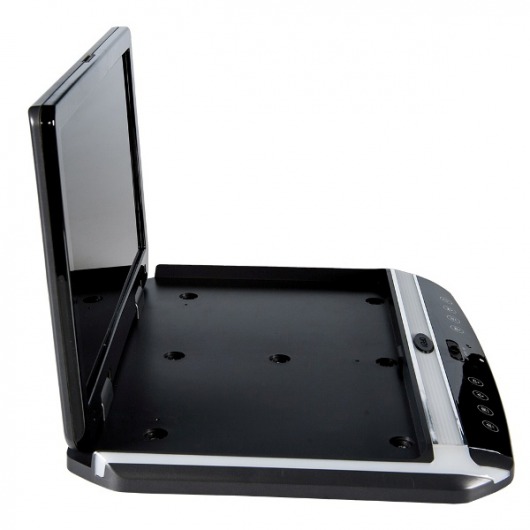 В автомобильном мониторе отсутствует DVD-привод, поэтому его толщина составляет рекордно малые 3 сантиметра. На потолке машины он будет почти незаметен. Размеры основания - 32,8х41,5 см.