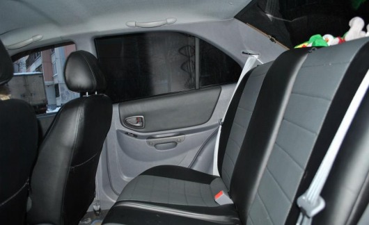 Вопросы и отзывы про Чехлы автомобильные для Hyundai Accent, седан от 08 г.в. (черно-темно-серые, экокожа)