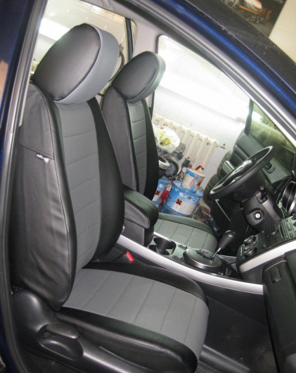 Автомобильные модельные чехлы для Mazda CX-7 (черно-темно-серого цвета) полностью повторяют контуры штатной обивки сидений. Вы можете быть уверены, что такие чехлы на сидения не потеряют форму даже спустя многие годы использования. Модельные чехлы "Автопилот" допускают использование штатного подогрева сидений, а также подходят сидениям с подушкой безопасности.