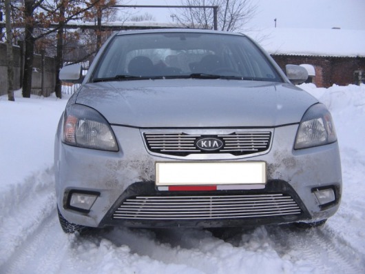 Тюнинг. Накладка на воздухозаборник КИА Рио Нью, несмотря на небольшой размер, сделает «лицо» вашего автомобиля еще более стильным и привлекательным. Наиболее выигрышно элемент смотрится в сочетании с накладками на радиатор для КИА.