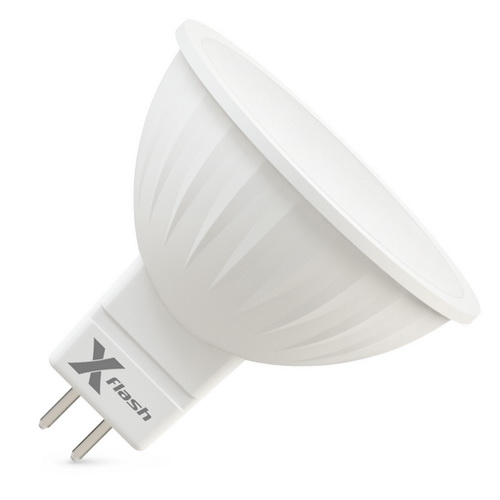 Светодиодная лампа X-FlashSpotlight MR16 GU5.3 имеет корпус из пластика и предназначена для общего и акцентного освещения. Лампа соответствует по форме, цоколю и размерам галогенным лампам MR16 и может применяться в любых светильниках, предназначенных для этого типа ламп. Использование светодиодов с высокой светоотдачей (от 85 лм/Вт) в лампах X-Flash позволяет получить увеличенные значения светового потока. Встраиваемые светодиодные лампы подходят для декоративных светильников, бра, помогают существенно снизить эксплуатационные расходы. Данная модель рассчитана на напряжение 12 В. Мощность диодной лампы X-Flash — 4 Вт., яркость — 320 Лм, угол освещения более 90°, а температура свечения – 4000 K (это белый свет).
