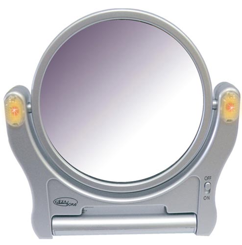 Компактное косметическое зеркало от французской фирмы Gezatone – незаменимый аксессуар любой женской косметички. Зеркало двустороннее и имеет поворотный механизм, одна сторона зеркала представляет собой обычную отражающую поверхность, а другая  отражает в 3-кратном увеличении. Кроме того, зеркало оборудовано подсветкой с обеих сторон, что дает ровное освещение  и позволяет пользоваться аксессуаром в слабоосвещенных местах.  Помимо всего прочего вы можете регулировать угол наклона, выбирая наиболее комфортный для вас положение зеркала.