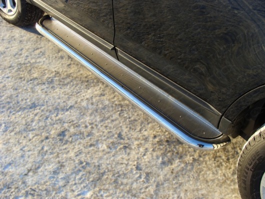 Пороги на Ford Edge – это боковые подножки из высококачественной полированной нержавеющей стали диаметром 60 мм, которые позволяют более комфортно входить и выходить из салона автомобиля. Подножки Ford Edge очень прочные, надежные и долговечные: им не страшна коррозия, сколы и царапины. Кроме того пороги из нержавеющей стали выдерживают большие нагрузки.