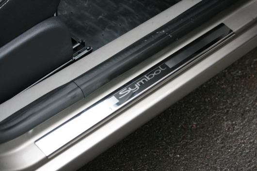 Внутренняя накладка на порог Renault Symbol — это аксессуар автомобильного тюнинга, который защищает внутренний порог от механических повреждений при посадке и высадке из машины. Декоративные накладки с рисунком на внутренние пороги предназначены для автомобилей Renault Symbol от 2008 г.в.
