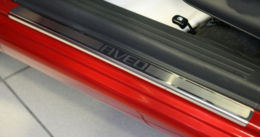 Внутренняя накладка на порог Chevrolet Aveo — это аксессуар автомобильного тюнинга, который защищает внутренний порог от механических повреждений при посадке и высадке из машины. Декоративные накладки с рисунком на внутренние пороги предназначены для автомобилей Chevrolet Aveo от 2004 г.в.