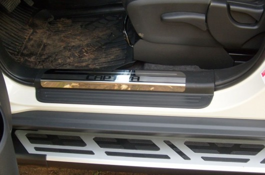 Накладки на боковые пороги Шевроле Каптива изготовлены из полированной нержавеющей стали. Она обеспечивает сохранность накладок от коррозии на весь период эксплуатации.