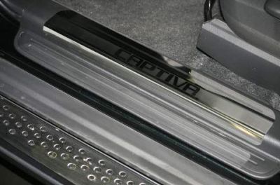 Накладки на пороги дверей Chevrolet Captiva не только обеспечивают защиту верхней и боковой поверхности внутреннего порога, но и отлично вписываются в интерьер автомобиля, подчеркивая его стиль и индивидуальность. C монтажом проблем не возникнет: установка накладок на внутренний порог для Chevrolet Captiva производится на штатные места с помощью скотча 3M.