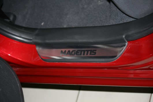 Внутренняя накладка на порог Kia Magentis — это аксессуар автомобильного тюнинга, который защищает внутренний порог от механических повреждений при посадке и высадке из машины. Декоративные накладки с рисунком на внутренние пороги предназначены для автомобилей Kia Magentis от 2007 г.в.
