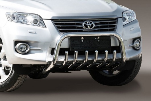 Передняя решетка Toyota RAV4 (кенгурятник) – это защитная дуга на бампер из нержавеющей стали диаметром 60 мм.