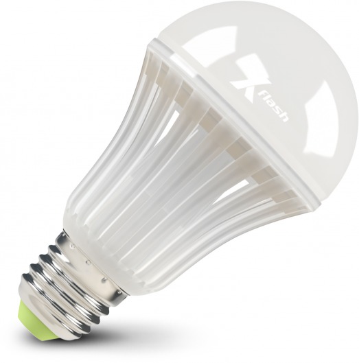 Светодиодная лампа X-Flash Bulb E27 BCD P 9W предназначена для общего освещения. Лампа диммируемая, т.е. может использоваться вместе с регуляторами светового потока. Колба матовая, имеет форму полусферы. По форме, цоколю и размерам соответствует аналогичным люминесцентным лампам и лампам накаливания. Данная модель — первая лампа с углом освещения 360º, благодаря чему корпус светится со всех сторон. Она рассчитана на напряжение 220 В. Мощность диодной лампы X-Flash — 9 Вт., яркость — 1050 Лм, а температура свечения  3000 K (это желтый свет).