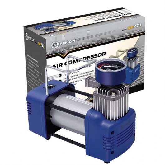 Поршневой автомобильный компрессор Carmega APF-511 при своих малых габаритах и весе отличается исключительно высоким показателем максимального давления (21 атм.). Вы можете с успехом использовать данную модель для накачивания шин любых транспортных средств, в том числе грузовых автомобилей и больших внедорожников. В комплект поставки включен набор из 3-х универсальных переходников, благодаря чему вы можете использовать Carmega APF-511 для накачки велошин, резиновых лодок, спортивного инвентаря и др. К плюсам автокомпрессора Carmega APF-511 можно также отнести продолжительный период непрерывной работы — 20 минут.