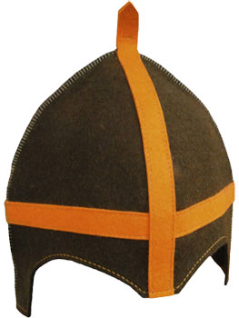 Шапка для бани "Шлем Витязя" - не только колоритный акссесуар для любого банщика, но и полезная вещь в парной.  Банная шапка выполнена из войлока в оригинальном дизайне, в виде шлема былинного героя, подчеркнет ваше чувство юмора.