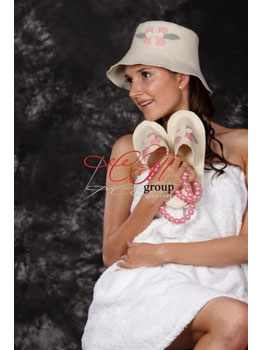 Набор для бани "Очарование", включающий в себя тапочки и шапку из натурального материала — превосходный подарок для любой любительницы бани. Колпак и тапочки выполнены в стильном, нежном дизайне и понравятся любой представительнице слабого пола.