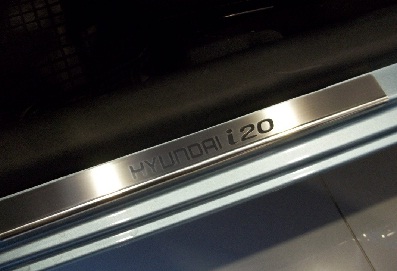 Внутренняя накладка на порог Hyundai I 20 — это аксессуар автомобильного тюнинга, который защищает внутренний порог от механических повреждений при посадке и высадке из машины. Декоративные накладки с рисунком на внутренние пороги предназначены для автомобилей Hyundai I 20 5D от 2009 г.в.