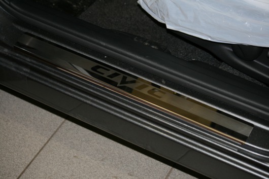 Внутренняя накладка на порог Honda Civic 4D — это аксессуар автомобильного тюнинга, который защищает внутренний порог от механических повреждений при посадке и высадке из машины. Декоративные накладки с рисунком на внутренние пороги предназначены для автомобилей Honda Civic 4D от 2006 г.в.