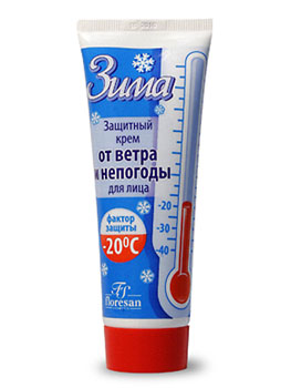 Крем "Зима" защищает нежную кожу лица от непогоды, одновременно ухаживая за ней. Воск и диметикон, входящие в состав крема, создают надежную невидимую пленку, предотвращая потерю влаги и обеспечивая максимальную защиту от воздействия дождя, снега и ветра. Кокосовое масло, пантенол, витамин А, экстракты ромашки и календулы оказывают питательное и витаминизирующее действие, предохраняют от сухости и шелушения кожи. Рекомендуется пользоваться кремом от непогоды при температуре воздуха до минус 20оС.