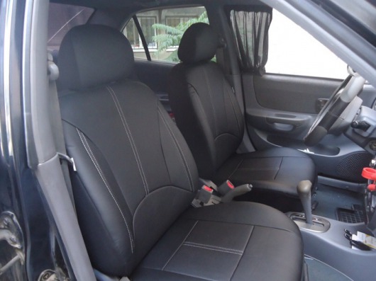 Чехлы для авто приятны на ощупь, стойки к стиранию и разрывам, легко чистятся, так как изготовлены из экокожи. Использование данного материала придает презентабельный вид вашему автомобилю при минимальных денежных затратах. Комфорт в использовании чехлов из экокожи достигается благодаря наличию карманов на спинках передних сидений, усовершенствованному крою и универсальным лекалам.