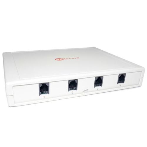 Для соединения с линией используются типовые телефонные разъемы. Пороги напряжения можно отрегулировать, благодаря чему адаптер совместим со стандартными и низковольтными АТС. К одному системному блоку возможно подключение до 16-ти адаптеров SpyRecord. Таким образом, с данным адаптером вы сможете вести запись разговоров с 64 телефонных линий.